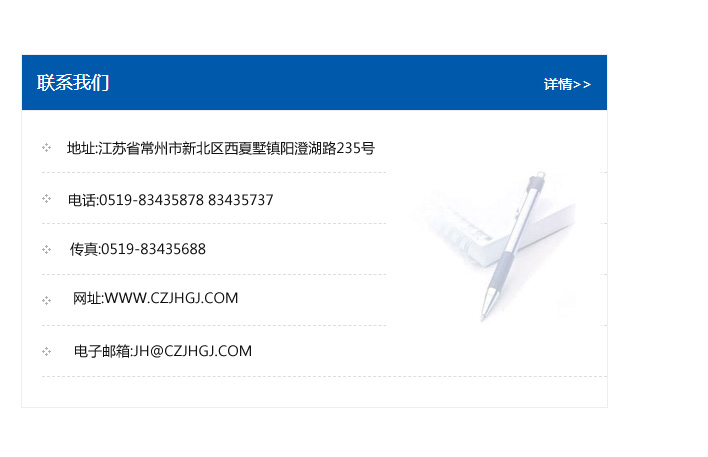 傳真:0519-83435688    郵編:213135    網址:WWW.czjhgj_com.jdzlinyi.com    電子郵箱:JH@czjhgj_com.jdzlinyi.com